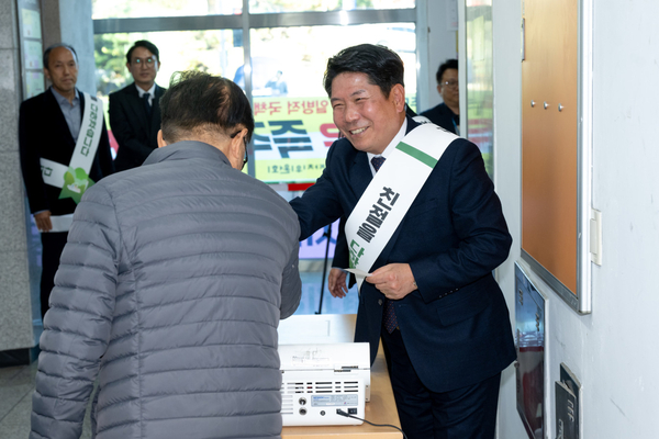 충북 제천시 김창규 시장이 지난 10일 청전동 행정복지센터를 찾아 직접 민원 안내 도우미로 나서며 현장 민원 활동을 펼쳤다.