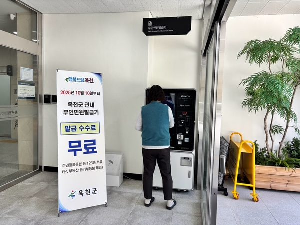 특히 지난 10월 10일부터 시행된 ‘옥천군 제증명 등 수수료 징수 조례’ 개정에 따라 옥천군 내 모든 무인민원발급기 수수료가 전면 무료화되면서, 군민 누구나 부담 없이 서비스를 이용할 수 있다.