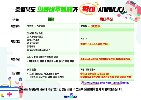 충청북도가 오는 12월부터 의료비후불제 지원을 대폭 확대한다.