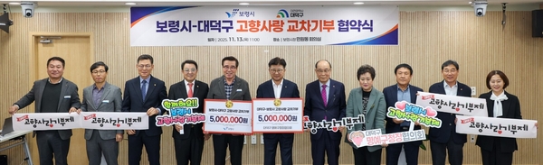 고향사랑기부제는 주소지 외 지방자치단체에 연간 최대 2000만 원까지 기부할 수 있는 제도로 기부자는 세액공제와 답례품을 받을 수 있다. 대덕구와 보령시는 협약을 계기로 제도 홍보와 연말 집중 모금 활동을 이어갈 계획이다.