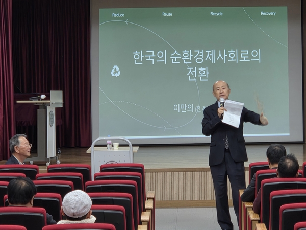 이만의 전 장관은 이날 ‘한국의 순환경제사회로의 전환’ 주제 강연에서 “지금 전 세계는 선형경제에서 순환경제로 패러다임이 변화하고 있다”며 “2050년 탄소중립을 위한 플라스틱 순환경제 전환이 필수적”이라고 역설했다.