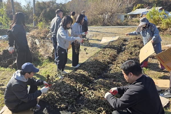 충남도 대변인실 직원들은 지난 14일 예산군 봉산면 농가를 방문, 녹두 수확과 마늘 심기 작업을 도우며 인력부족으로 어려움을 겪는 농촌에 따뜻한 손길을 전했다.