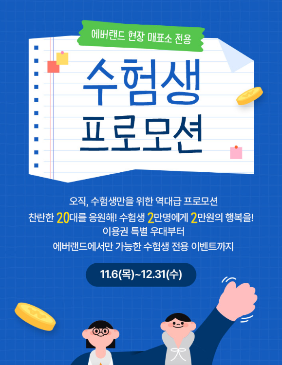 ▲에버랜드도 수험생 우대 혜택을 제공한다. 수험생은 연말까지 에버랜드를 2만원에, 연간 자유이용권인 정기권을 50% 할인된 가격에 구입할 수 있다.