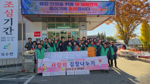 금산군 복수면새마을지도자회(회장 이덕수)와 새마을부녀회(회장 박선교)는 지난 13일부터 14일까지 복수면행정복지센터에서 지역 내 소외계층에게 따뜻한 마음을 나누기 위한 사랑의 김장 나누기를 전개했다.