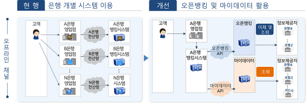 금융위에 따르면 2019년 도입된 오픈뱅킹은 금융결제원을 통해 운영되는 금융권 공동의 인프라로 단기간에 간편결제·송금, 자산관리·해외송금 등 다양한 핀테크 서비스의 기반이 되는 핵심적인 결제인프라로 자리 잡았다. 오픈뱅킹 이용자 수는 3900만 명에 이른다. 2022년 시행된 금융 마이데이터는 이용자가 자신의 금융자산·거래내역 등을 통합적으로 조회할 수 있는 시스템으로 개인신용정보활용의 주체를 금융회사 등에서 개인 본인으로 이동시켰고 개인의 데이터가 집적된 금융플랫폼으로 작동하면서 대환대출, 맞춤형 상품 비교·추천 등 혁신적인 금융서비스가 출현하는 계기를 만들었다. 그러나 이 모두 웹·모바일 등 온라인 방식으로만 제공이 가능하고 오프라인에서는 서비스가 제공되지 않았다.