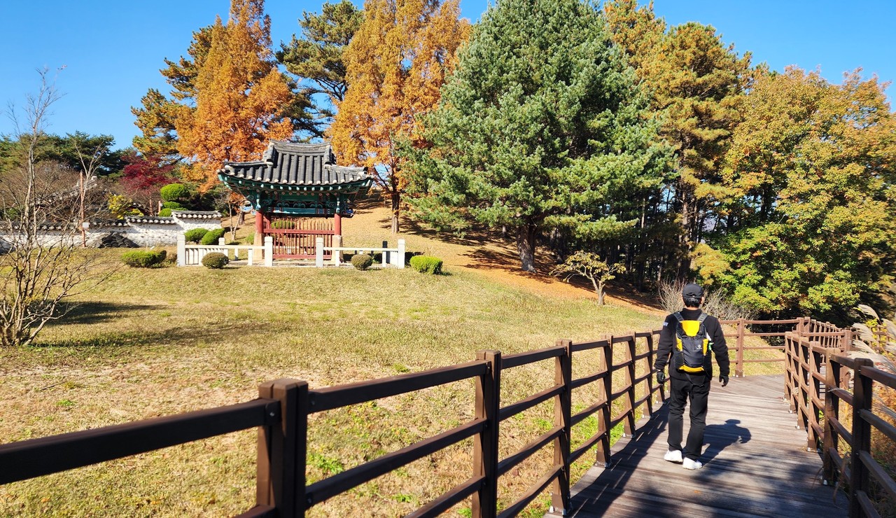 잘 정비된 벚꽃한터(주차장)에서 초콜릿색 만추의 여정을 시작한다. 어느새 대청호에도 가을이 내려앉았다. 충암 김정 선생 유적지를 중심으로 새로 조성된 ‘충암 누리길’을 걷는 것으로 워밍업을 한다. 고풍스러운 고택과 아름다운 대청호의 수변 경관이 어우러지도록 호반을 따라 데크길이 조성됐는데 숲내음이 은은하게 퍼지는 가운데 펼쳐지는 고즈넉한 분위기와 공간미가 돋보인다. 천천히 걸으며 사색에 잠기면 몸과 마음이 자연스럽게 힐링의 마법을 경험하게 된다. 쉬엄쉬엄 15분 정도면 한 바퀴를 다 돌아볼 수 있다.