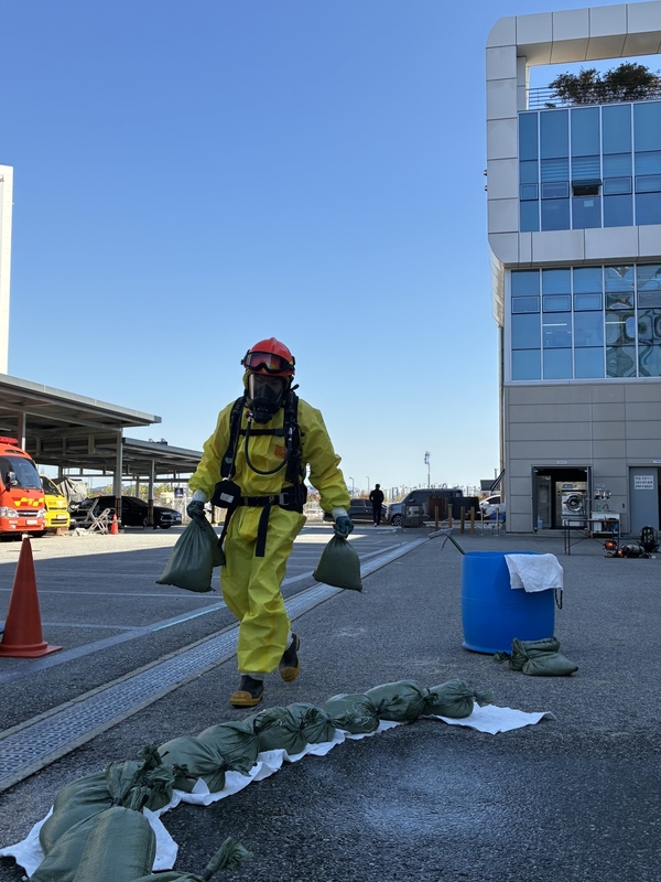 이번 시험은 국가자격 평가로 화학물질 누출·폭발 등 특수재난 현장에서 신속하고 전문적인 대응을 수행하기 위한 실기능력 검증 과정이며 시험항목은 ▲C급 화학보호복 착·탈의▲오염지역 통제선 설치▲화학물질 식별 및 정보확인▲누출탐지·긴급제독 ▲기체·액체 누출통제 등 총 7개 항목이다.
