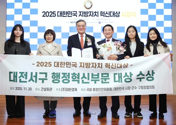 대전 서구가 20일 ‘다자녀가구 재산세 50% 감면 제도’를 전국에서 처음 시행한 성과를 인정받아 ‘2025 대한민국 지방자치 혁신대상’ 행정혁신부문 대상을 받았다.