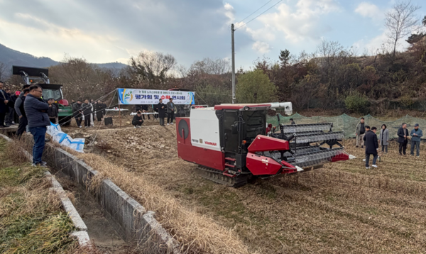 인구 감소·고령화 노동력 감소 보완 콤바인 이용 콩 수확 기술 전달
