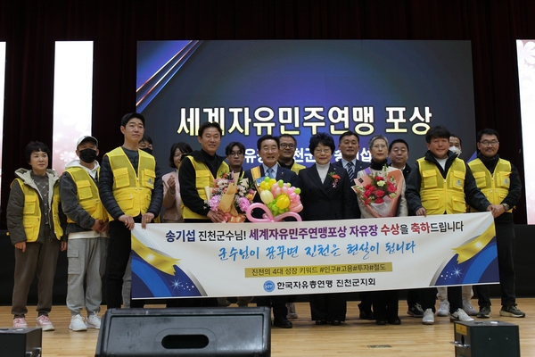 송기섭 군수는 수상 소감에서 “자유민주주의는 우리 사회의 근간이자 미래 세대를 위한 핵심 가치”라며 “앞으로도 진천군이 평화와 번영의 중심 도시로 성장할 수 있도록 더욱 노력하겠다”고 밝혔다.