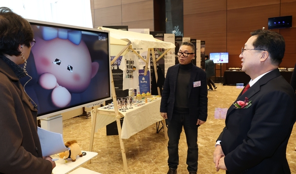지난 21일 호텔ICC에서 2025 대전콘텐츠기업인의 날 행사가 열려 이장우 대전시장(오른쪽)이 현장을 둘러보고 있다. 행사는 지역 콘텐츠산업의 한 해 성과를 공유하고 업계 간 교류 강화를 위해 마련돼 ‘콘텐츠로 하나 되는 대전, 미래를 연결하다’를 주제로 콘텐츠산업 발전 유공자 24명 표창과 축하공연, 네트워킹 만찬으로 이어졌다.