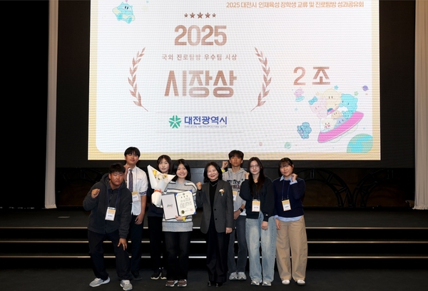 국외 진로탐방에서 우수한 성과를 거둔 장학생에게는 대전시장상이 수여돼 축하 분위기를 더했다.