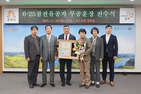 공주시는 지난 24일 시청 집현실에서 6·25전쟁에 참전해 용감하게 헌신하고 공을 세운 고(故) 이재설 중사의 유가족에게 무공훈장과 훈장증을 전달했다.