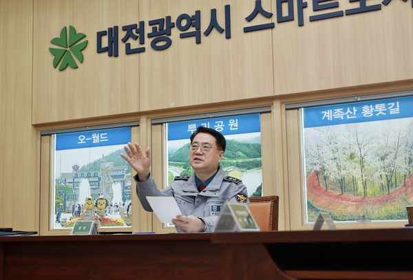 최주원 대전경찰청장이 25일 유성구 봉명동 스마트도시통합센터를 방문해 CCTV 통합관제와 교통정보 관리 현장을 점검하고 근무자들을 격려했다.
