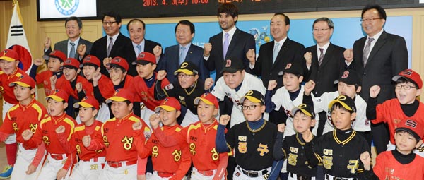 이날 협약식에는 염홍철 대전시장과 박찬호, 한영관 한국리틀야구연맹회장을 비롯해 대전지역 리틀야구단 등 30여 명이 참석했다.