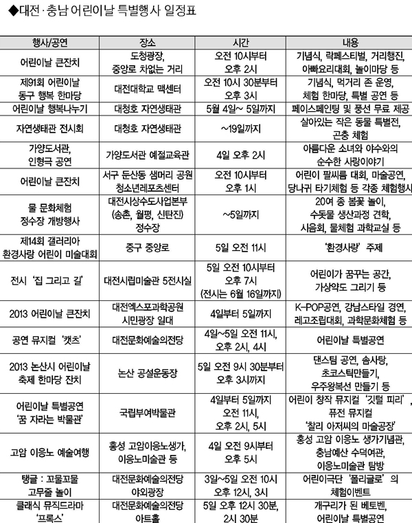 대전시와 5개구에서도 어린이들을 위한 풍성한 행사를 준비했다.