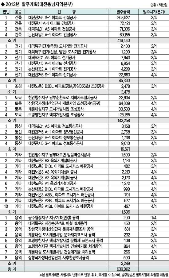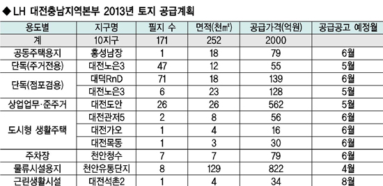 LH 대전충남지역본부의 2013년 사업계획을 들여다보면 알짜정보와 투자기회를 얻을 수 있는 좋은 기회가 될 것으로 보인다.