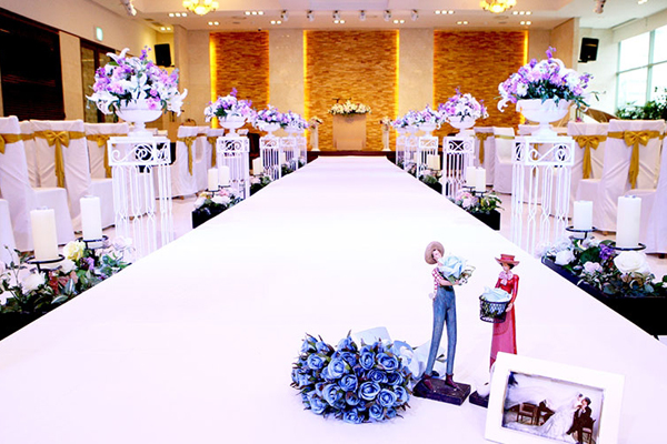 -다이아몬드홀: 전문 플로리스트가 연출하는 무대와 꽃길, 테이블 꽃 장식, 홀 배경에 화려한 LED 조명으로 신비로운 환상의 로맨스를 정제된 우아함으로 표현한다. 하객들 모두 신랑·신부의 행복과 감격스러움을 공감할 수 있다.