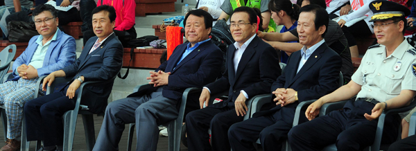 상생축제에 참가한 염홍철 대전시장, 유한식 세종시장, 신정균 세종시교육감, 이충재 행정도시건설청장, 심은석 세종시경찰서장 등 내빈들이 자리를 빛내고 있다.
