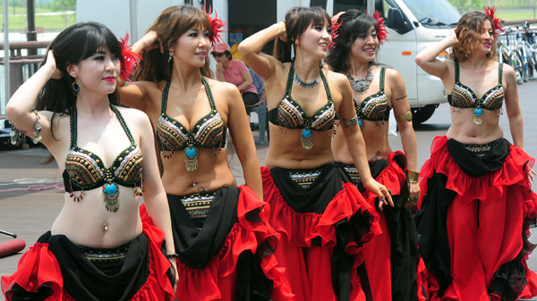 상생축제장에서 벨리댄서들이 힘차게 허리를 돌리며 참가자들의 시선을 고정시키고 있다.