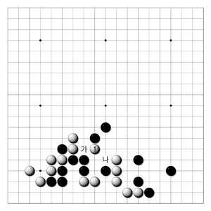 <문제도> 흑이 둘 차례 하변의 백 다섯 점을 잡으면 전체의 흑이 연결됩니다. 그 다섯 점을 잡아 보십시오.