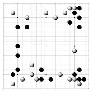 ◐ 8월 20일자 문제 해설 <정해> 상대가 두느냐, 내가 두느냐로 천하의 형세가 일변하는, 그런 요소가 포석에서는 자주 나타납니다. 좌상의 흑①로 한 칸 뛴 것이 바로 그곳입니다. 백이 이곳에 두는 것과 비교하면 피차의 모양의 크기, 발전성이 크게 바뀐다는 것을 알 수 있을 것입니다.