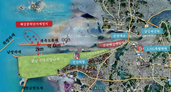 산업통상자원부와 전라북도에서 추진 예정인 ‘북측도류제 풍력발전단지 조성사업’이 서천군 김 산업에 큰 피해를 끼칠 것이라고 주장하며 어민들이 반발하고 나섰다.