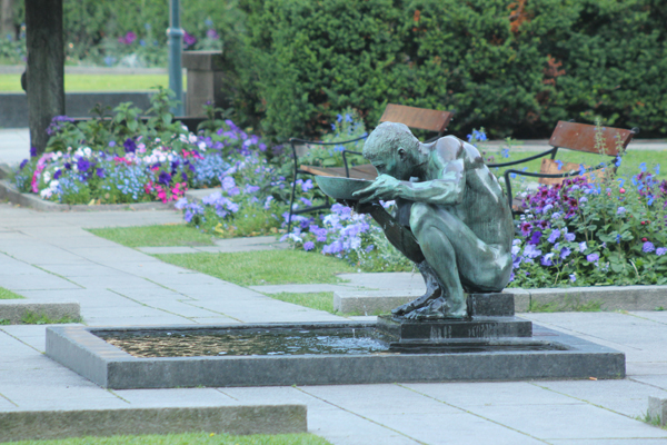평화 향한 갈망 - 긴 장마와 폭염이 교차하면서 계속될 때 생각나는 시원한 냉수, 마음과 몸의 갈증을 해소해 줄 것 같다. 이 조각상은 아직도 오지 않는 세계 평화에 대한 갈망으로 몸부림치는 듯 보인다. 조각에 이렇게도 어마어마한 의미를 붙이는 이유는 이 조각의 위치 때문에 필자가 생각해낸 개인적인 견해이다. 오슬로 시청사에서는 매년 12월 10일 노벨 평화상이 시상된다. 노벨의 조국 스웨덴 스톡홀롬이 아닌 오슬로 의회가 평화상 대상자를 선정한다. 전쟁과 다툼, 기아와 빈곤, 종교와 이념 등 수많은 갈등으로부터 평화의 힐링이 구현된다면 온 누리에 화평이 오리라 기대한다.