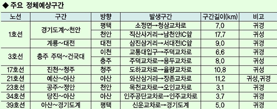 주요 혼잡 예상구간은 국도1호선 평택~천안, 계룡~대전, 국도17호선 진천~청주, 국도21호선 아산~예산, 국도34·39호선 당진~평택 구간 등으로 대전국토청은 확장 및 신설공사가 진행 중인 충청권 국도 7개 구간(총 연장 26.9㎞)을 임시 개통하기로 했다.