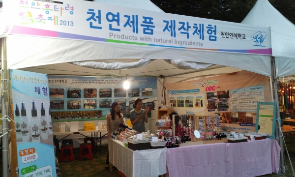 천안인애학교의 학교기업인 해미래에서 6일까지 열리는 천안 흥타령축제에서 지역사회와 함께하는 장애인식 개선을 위한 프로그램 ‘함께하는 우리들의 손짓 그리고 향기! With Our Handing and Aroma!’를 진행한다.
