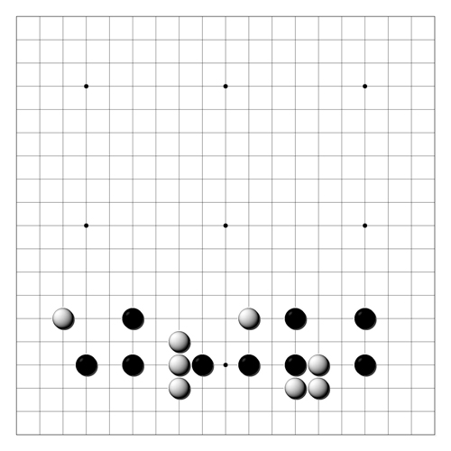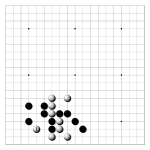 <테스트 30> 흑이 둘 차례 우하의 백을 공격하고 싶은 것입니다만, 갑작스레 잘 되지 않습니다. 그래서….