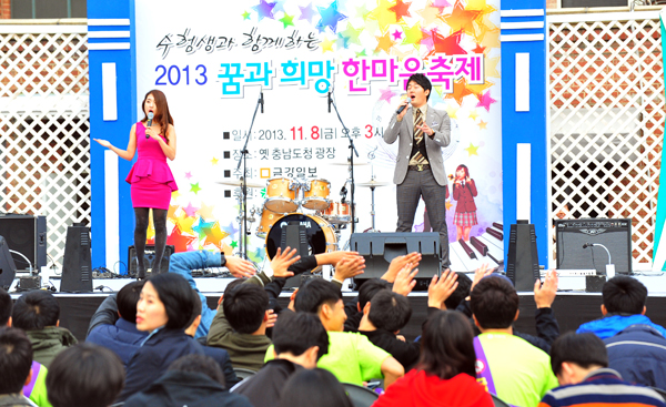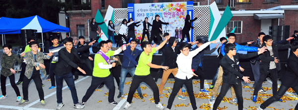 수능은 끝나도 독도 사랑은 '쭉' 수험생과 함께하는 2013 꿈과 희망 한마음축제가 8일 대전 중구 선화동 옛 충남도청 광장에서 열려 참가 학생들이 ‘독도는 우리땅’ 플래시몹을 펼치며 멋진 율동을 선보이고 있다.