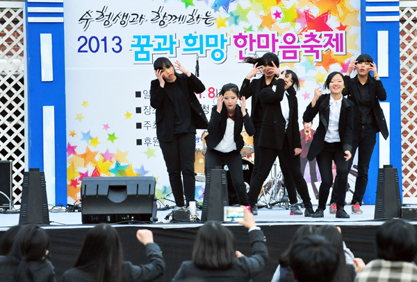 "선배님들 고생하셨어요" 대전여상 댄스팀이 멋진 음악과 율동을 선보이고 있다.