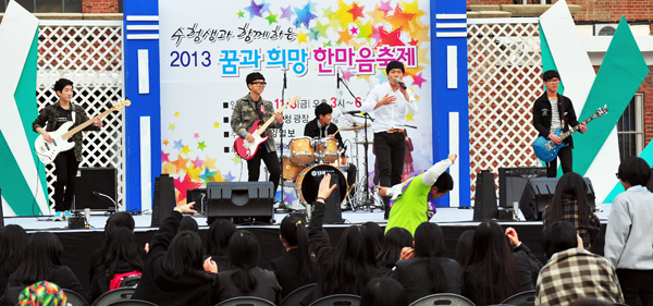 소리 질~~러!!! 동아마이스터고 밴드팀이 멋진 연주를 선보이며 분위기를 고조시키고 있다.