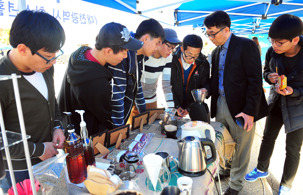 바리스타 되어볼까 수능을 마친 수험생들이 바리스타 체험인 핸드드립을 하며 알찬시간을 보내고 있다.