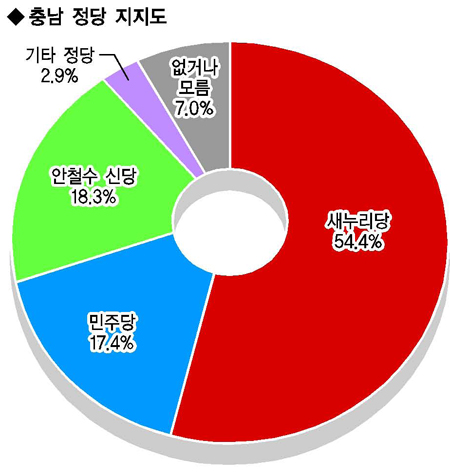 충남 새누리 소폭 하락, 민주·安신당은 ↑