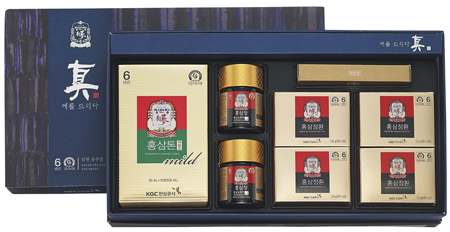 사회생활로 바쁜 장년층에게는 ‘진-예를드리다(22만 원)’세트가 어울린다. 정관장의 대표 상품인 홍삼정플러스와 섭취가 간편한 홍삼정환, 홍삼톤마일드로 구성돼 다양한 홍삼 제품을 즐길 수 있도록 했다. 휴대와 보관이 간편해 직장에서나 가정에서나 쉽게 홍삼을 즐길 수 있다. 특히, ‘진-예를드리다’세트에 구성된 홍삼정환은 홍삼농축액과 올리고당, 식이섬유를 배합해 환(丸) 형태로 만들어 섭취가 간편하다. 또 홍삼톤마일드는 홍삼농축액에 작약, 참당귀, 천궁, 황기 등 식물성 원료를 넣어 만든 정관장 인기 제품이다.