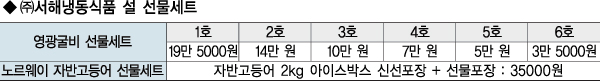 설과 추석 인기가 가장 높은 선물 중 하나인 영광굴비 세트는 6호 3만 5000원부터 1호 19만 5000원까지 가격별로 준비돼 있다.