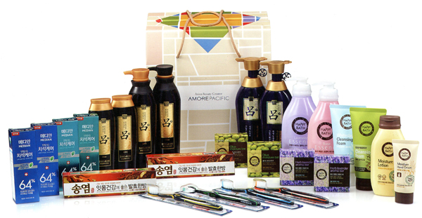 아모레퍼시픽의 대표 생활용품들로 구성된 종합선물세트는 경제적이면서도 실속 있는 명절 대표 인기 상품이다. 미쟝센, 려, 해피바스, 일리, 메디안, 송염 등 헤어와 바디, 치아관리를 위한 제품들로 구성돼 여러 연령대의 가족원을 위한 선물로 안성맞춤이다. 가격대도 8500원부터 3만 1000원까지 다양하다.