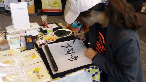구경하던 사람들이 손 글씨에 매료돼 하나둘씩 모이기 시작했고 어느새 북새통을 이뤘다. 준비한 종이가 모자라 또 사오는 해프닝도 발생됐다.