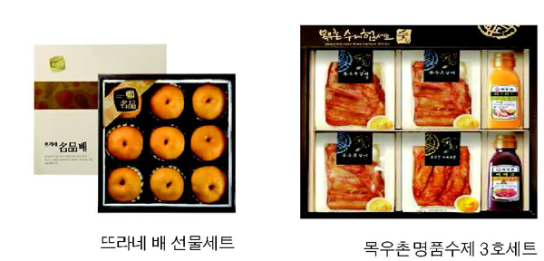 농협 대표브랜드인 ‘뜨라네’, ‘아침마루’ 등 사과, 배 과일선물세트는 3만 원대부터 다양하게 판매하며, ‘농협아름찬’의 버섯, 곶감, 기름류 선물세트와 ‘한삼인’ 홍삼제품, ‘목우촌’ 햄가공제품 등도 다양하게 준비했다.