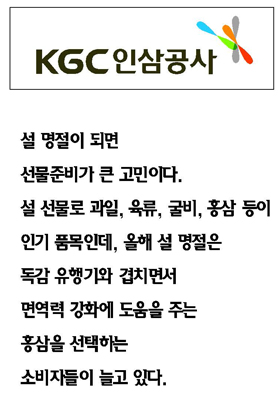 KGC인삼공사 관계자는 “정관장 홍삼은 전통적으로 선물로 가치가 높았는데 최근 한국을 방문한 국빈들에게도 증정되면서 품질에 대한 신뢰도와 품격을 크게 인정받았다”며 “받는 분의 건강까지 생각하는 마음을 전할 수 있는 다양한 선물세트를 준비했다”고 말했다.