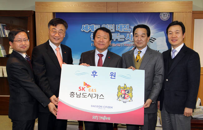 충남도시가스가 대전시티즌 후원기업에 이름을 올렸다.충남도시가스는 29일 대전시에서 구단주인 염홍철 대전시장과 김윤식 대전시티즌 사장 등이 참가한 가운데 후원협약식을 갖고 3억 원의 후원금을 전달했다.이날 협약식에서 염 시장은 “지역 기업들의 관심이 우리 대전 시민들의 기쁨이 될 것으로 믿는다”며 후원의 의미를 부여했다.강상원 충남도시가스 사장은 “직원들과 함께 대전시티즌 경기 단체관람 및 응원 등 앞으로도 적극적인 후원을 이어가겠다”며 “대전시티즌이 2011 시즌에 좋은 성적을 내길 바란다”고 기원했다.