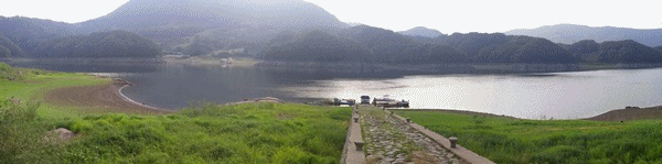 남쪽으로 길을 잡는다. 콘크리트 도로를 따라 간다. 콘크리트만 빼면 그래도 자연의 멋이 물씬 풍긴다. 어딜 가나 마을 어귀엔 대나무숲이 있는 법. 이곳도 예외는 아니다. 바람에 대나무 잎 파르르 떨리는 소리가 요란하다. 바람 자체도 시원하지만 이 소리 때문에 시원함이 배가된다. 도로가에 산딸기 몇 송이가 수줍게 매달려 있다. 새콤달콤한 맛이 9구간 시작길에서 힘을 불어넣어준다. 하늘에서 보면 이곳은 제법 긴 반도다. 물길 따라 걷는 맛이 좋다. 호반길의 묘미가 살아있다.