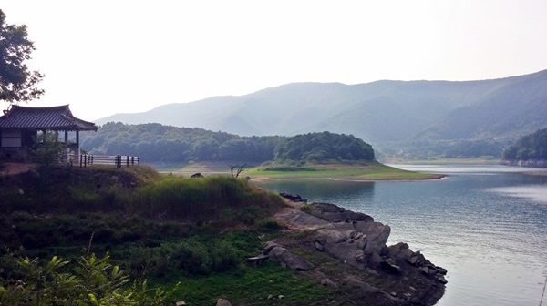가뭄을 실감한다. 대청호로 유입되는 물이 많이 줄었다. 강원·경기지역보단 덜 하지만 수위가 많이 낮아졌다. 풀이 자란 땅과 그렇지 않은 땅이 확연히 구분되기 때문에 물이 얼마나 줄었는지 금방 알 수 있다. 산기슭 얕았던 곳은 이미 민낯을 드러냈다. 물이 많이 차 있었을 땐 대청호 속 지형이 궁금했는데 실제 물이 조금씩 줄어드는 걸 보니 겁이 난다. 요즘 엘리뇨 현상도 더 심화되고 있다는데 빨리 자연이 치유되길 기원해 본다. 충청의 젖줄 금강, 이 물이 천년만년 영원하길 기대하며 9구간의 길을 나선다. 이 코스는 약 10㎞, 쉬엄쉬엄 5시간 30분 정도 소요된다. 옥천 군북면 석호리 진걸선착장-청풍정-돌거리고개-국원 삼거리-37번 국도 교각-며느리재-마성산-교동저수지 옆길-정지용 생가로 이어진다.