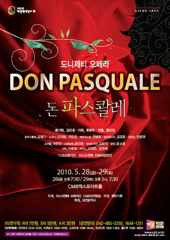 오페라 ‘돈 파스콸레’가 오는 28일, 29일 CMB엑스포아트홀에서 공연된다. 이 무대는 ‘코지판 뚜떼’ ‘사랑의 묘약’ ‘리골레토’ 등을 즐거운 오페라여행 시리즈로 소극장 무대에 올린 리소르젠떼오페라단이 준비한 것이다.‘돈 파스콸레’는 가에타노 도니제티작 3막 희극 오페라로, 대전에선 초연되는 작품이다. 오페라는 로마의 부유한 늙은 독신자 돈 파스콸레가 자신의 조카 에르네스토와 가난한 과부인 노리나의 결혼을 반대하며 시작한다. 조카 에르네스토가 돈 파스콸레의 뜻을 따르지 않자, 그는 본인이 직접 결혼해 아이를 낳고 재산을 물려주리라 생각한다. 돈 파스콸레의 주치의는 노리나를 변장시켜 자신의 여동생 소프로니아로 소개, 그와 결혼식을 올리게 한다. 이 사실을 안 돈 파스콸레는 결혼의 끔찍함을 토로하며, 에르네스토와 노리나의 결혼을 허락하는 것으로 이야기는 흥겹게 마무리 된다.진정한 사랑의 의미를 일깨우는 이 오페라는 주인공의 비통함과 환희, 열정이 묻어나는 아리아로 관객을 사로잡을 예정이다. 돈 파스콸레는 바리톤 김형기, 에르네스토는 테너 전병호, 말라테스타는 바리톤 길경호, 노리나는 소프라노 신지화와 구은경이 더블캐스팅 됐다. 문의 042-485-3355