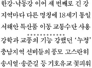 ‘충청도읍지’에는 금강에 위치한 누정들에 대해 자세히 서술했다.