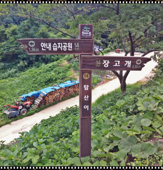 가쁜 숨을 몰아쉬어야 할 정도로 가파르다. 50분 정도 사투를 벌인 끝에 솔목이 갈림길 표지판을 만난다. 이제야 안심이 된다. 장고개를 향해 3.3㎞. 또 힘을 낸다. 1.5㎞ 정도 걸으니 화골 갈림길이다. 장고개까지 1.8㎞가 남았다고 알려준다. 여기서부턴 제법 큰 임도를 따라 걷는다. 나뭇잎이 자랄 대로 자라 임도는 터널을 이룬다. 간간이 불어오는 시원한 바람이 피로를 말끔히 씻어준다.