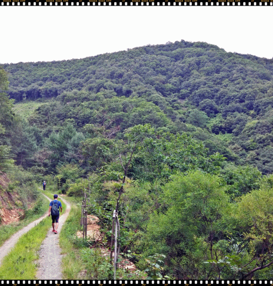갈림길인데 방향이 애매·모호하다. 큰 길(임도)을 따라 산에 오른다. 구불구불 임도가 이어진다. 그래서 장고개구불길인가? 가는 길에 작은 사방댐도 만난다. 특이하게 물레방아가 설치돼 있다. 물레방아에서 떨어지는 물소리가 시원함을 선사한다. 임도를 따라 5㎞를 걸었다. 그런데 도무지 산 정상으로 난 길이 없다. 또 길을 잘못 들었다. 한 숨이 나온다. 다시 리턴. 10㎞, 2시간 30분을 허비했다. 두 번의 실수, 허탈하다. ‘장고개 4.6㎞’ 표지판 옆으로 길이 있는데 또 못 봤다. 다시 시작이다.