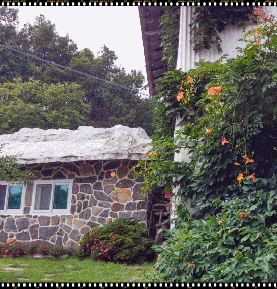 공기부양정을 관리하는 막지리 이장은 대전 토박이다. 30여 년 전 이 마을에 들어와 이곳 사람이 다 됐다. 마을에서 이장님 집을 찾는 건 그리 어렵지 않다. 매우 특이한 모양새를 하고 있어서다. 돌벽에 돌지붕이 얹혀있다. 알고 보니 돌지붕은 FRP(유리섬유강화플라스틱)를 가공한 것이라고. 집 울타리는 제철을 만난 능소화와 딱 백일만 아름다운 붉은 꽃의 매력을 뽐낸다는 목백일홍(배롱나무 꽃, 백일홍과는 다른 것임)이 대신한다.
